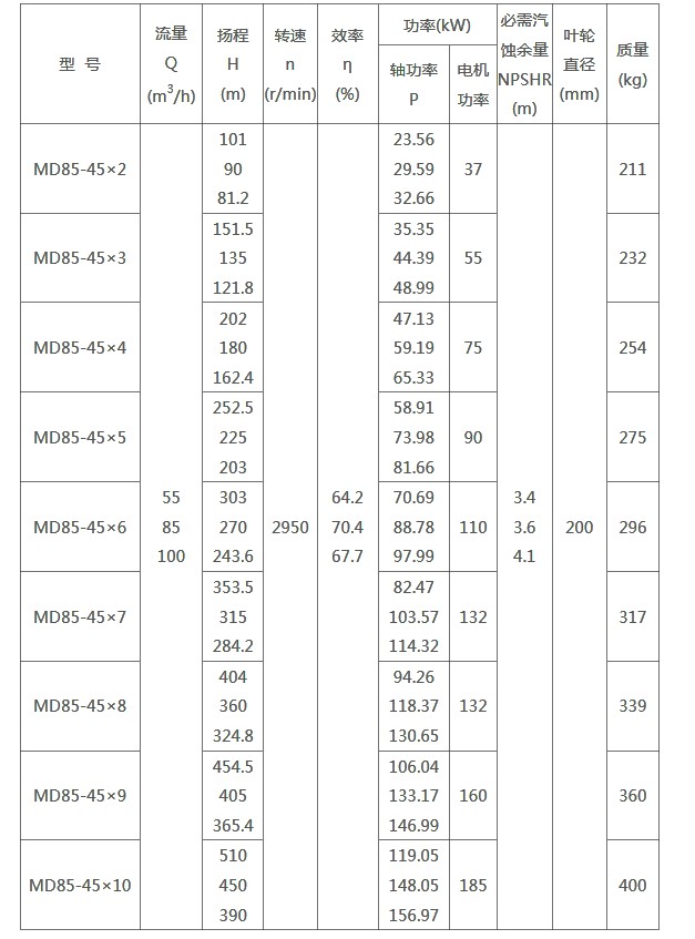 MD85 - 45* 6礦用多級泵_型號價格_參數(shù)_原理